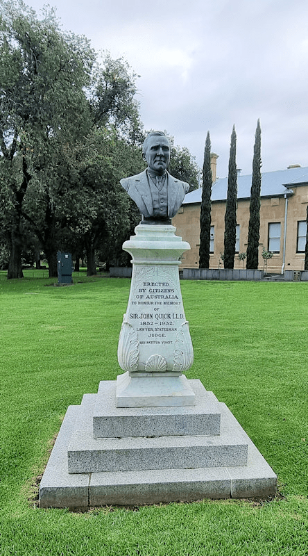 Located in Queen’s Gardens, this monument is dedicated to Sir John Quick, a prominent Australian lawyer, politician, and one of the authors of the Australian Constitution. He was a leading delegate at the constitutional conventions of the 1890s and served as the federal Member of Parliament for Bendigo from 1901 to 1913.