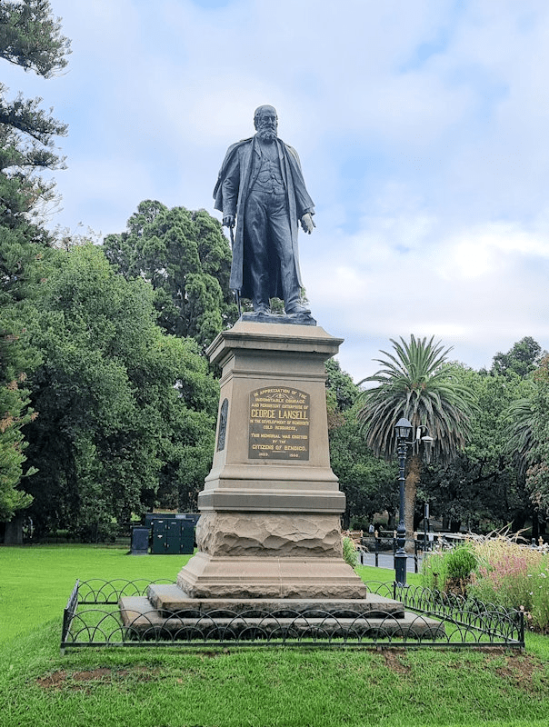 Born on 24 August 1823, George Lansell (1823-1906) was mining entrepreneur and businessman, who influenced the gold mining industry in Bendigo. His statue is next to the Military Museum.