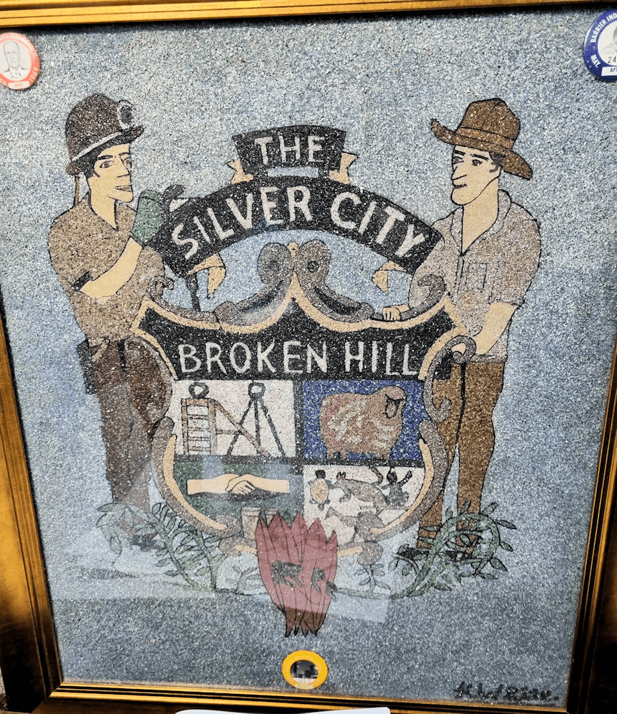 At the centre of the gallery is mineral art; a style that Kevin White pioneered. While working underground as a miner, White began experimenting with crushed rocks and minerals from the Line of Lode. Initially, it was a way to pass the time and use materials close at hand. Over time, he refined his technique, arranging finely ground minerals of different natural shades to depict local landscapes, mine headframes, and scenes of daily life. His works captured the colours and textures of the land itself, turning Broken Hill’s ore into a medium for storytelling. What started as a miner’s pastime grew into a unique art form now recognised as one of the city’s creative treasures.