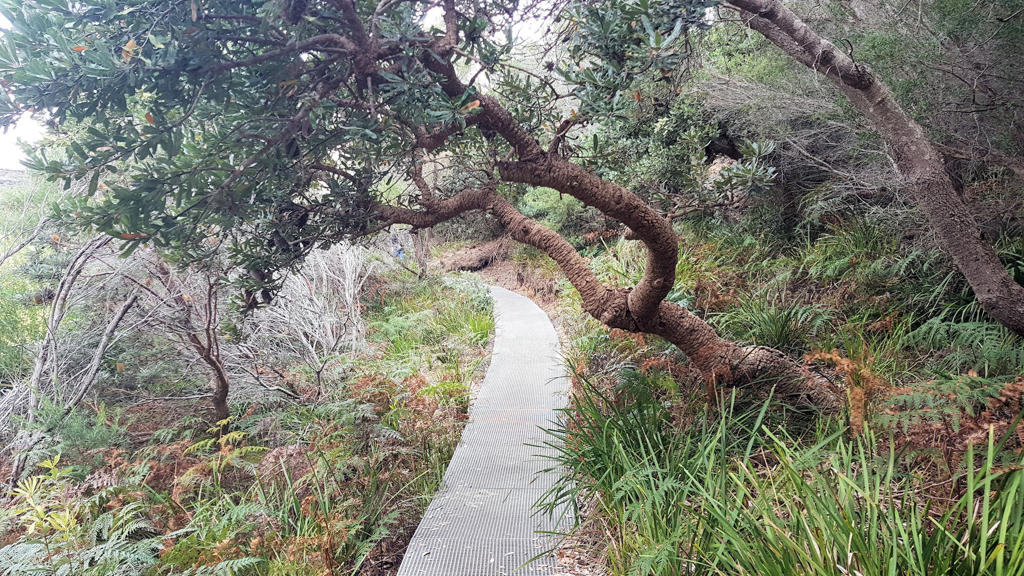 The track passes coastal cliffs with magnificent ocean views, where we stopped to take photos and admire the scenery. The cliffs are high, so stay away from the edges. During the whale migration season, this is a favourite place for people to watch them going by.