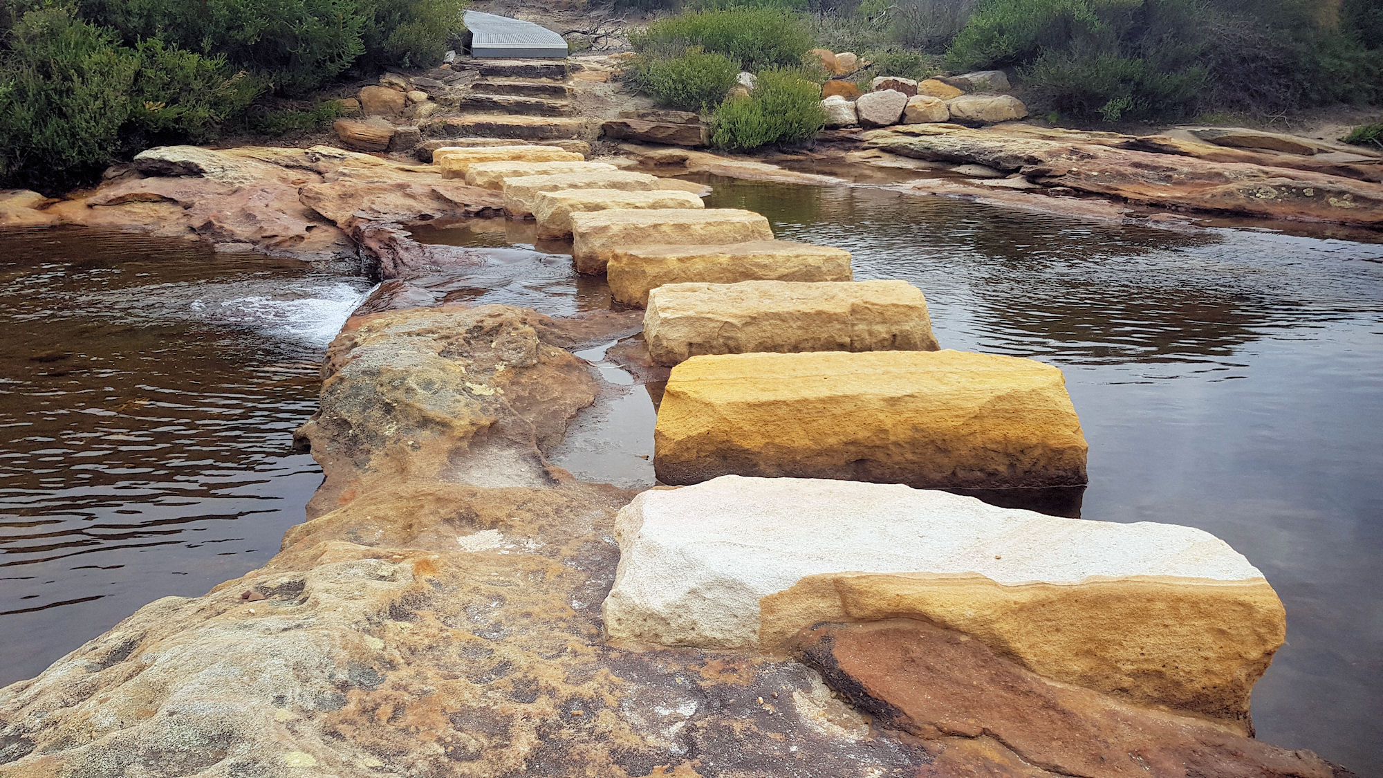 Several small creeks are crossed along the way, with steppingstones made from carved sandstone.