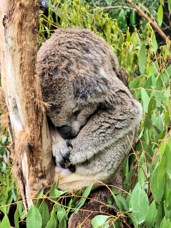 Due to the rain, many animals and birds were under shelter, but we were still able to see most of them. The kangaroos were all staying dry undercover, but the koalas were all soaked, but sleeping soundly in their trees.