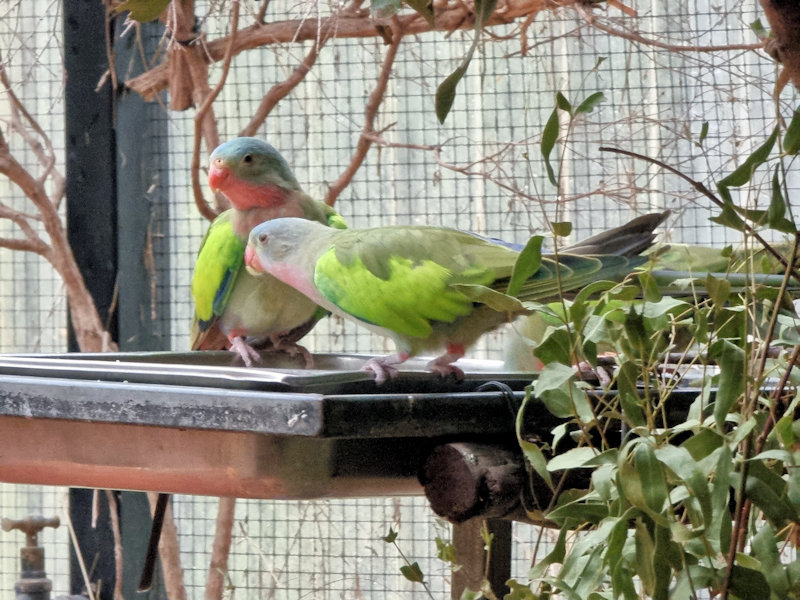 With the lack of other visitors, we had a great time during the bird feeding times in the walk-through aviaries. The keepers fed the birds fruit and, we were able to see them all up close.