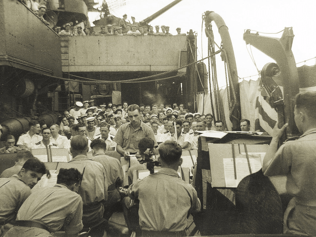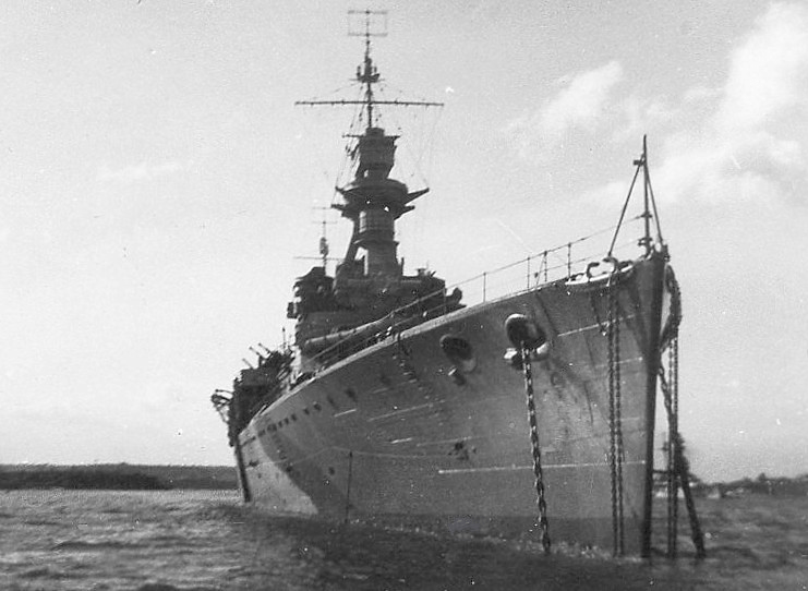 When World War II began, the Royal Navy decided to reconvert Frobisher back to a heavy cruiser, though the work proceeded slowly due to higher priorities for other vessels. The conversion was finally completed in March 1942, and she was assigned to the Eastern Fleet’s 4th Cruiser Squadron. For the next two years, she escorted convoys and capital ships in the Indian Ocean, notably assisting the damaged French cruiser Le Triomphant in December 1943.