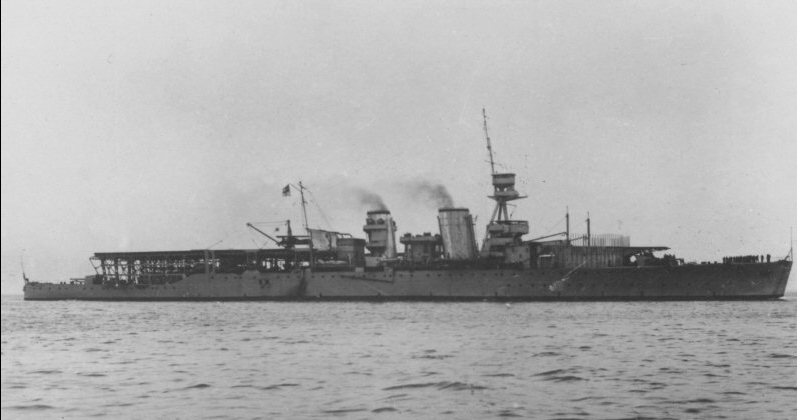HMS Vindictive was originally laid down as HMS Cavendish, one of the Hawkins-class heavy cruisers ordered during the First World War. Before completion she was selected for conversion into an aircraft carrier, reflecting the Admiralty’s growing interest in naval aviation. Renamed Vindictive in June 1917, she was launched in January 1918 and completed in October that year, just weeks before the Armistice. Her design was experimental, with a flying-off deck forward, a hangar amidships, and a landing deck aft, though the latter was obstructed by her funnels and superstructure. These limitations made her an unsatisfactory carrier, capable of operating only light aircraft with difficulty.