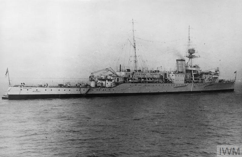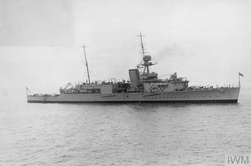 After returning from the Baltic she was used briefly as a training and trials carrier before being placed in dockyard hands in 1923. Between 1923 and 1925 she was rebuilt as a conventional cruiser, armed like her Hawkins-class sisters with seven 7.5-inch guns. In this guise she served overseas, particularly in the Mediterranean and East Indies, fulfilling the trade protection and imperial duties for which the class had been designed. In 1936 she was converted into a training ship, her main armament reduced and accommodation provided for cadets, inline with the Washintong Treaties’ limit of 15 heavy cruisers for the Royal Navy.