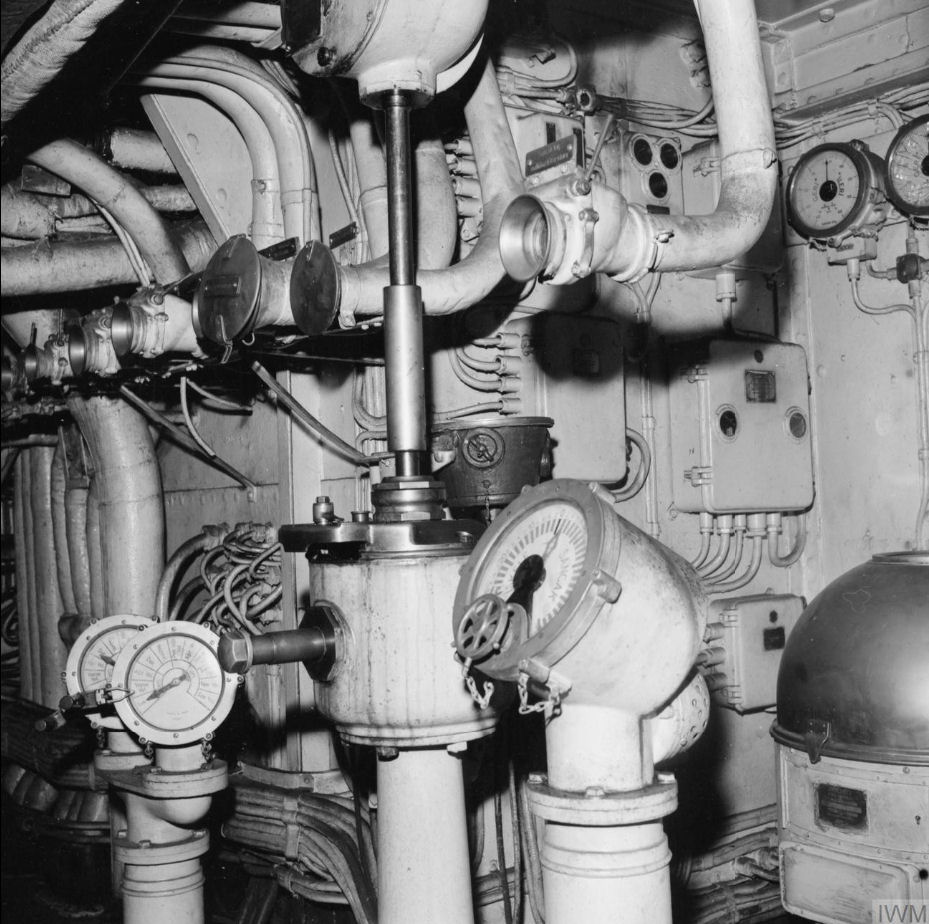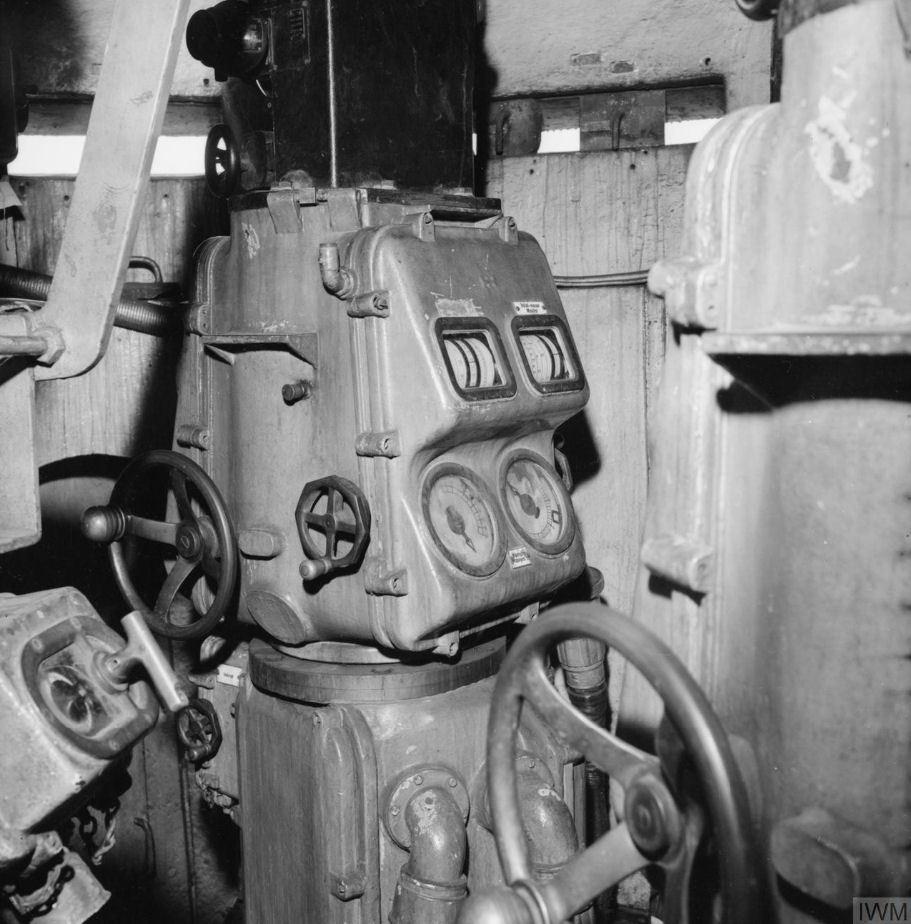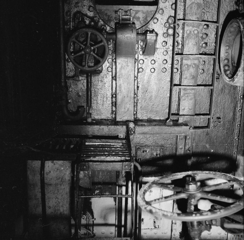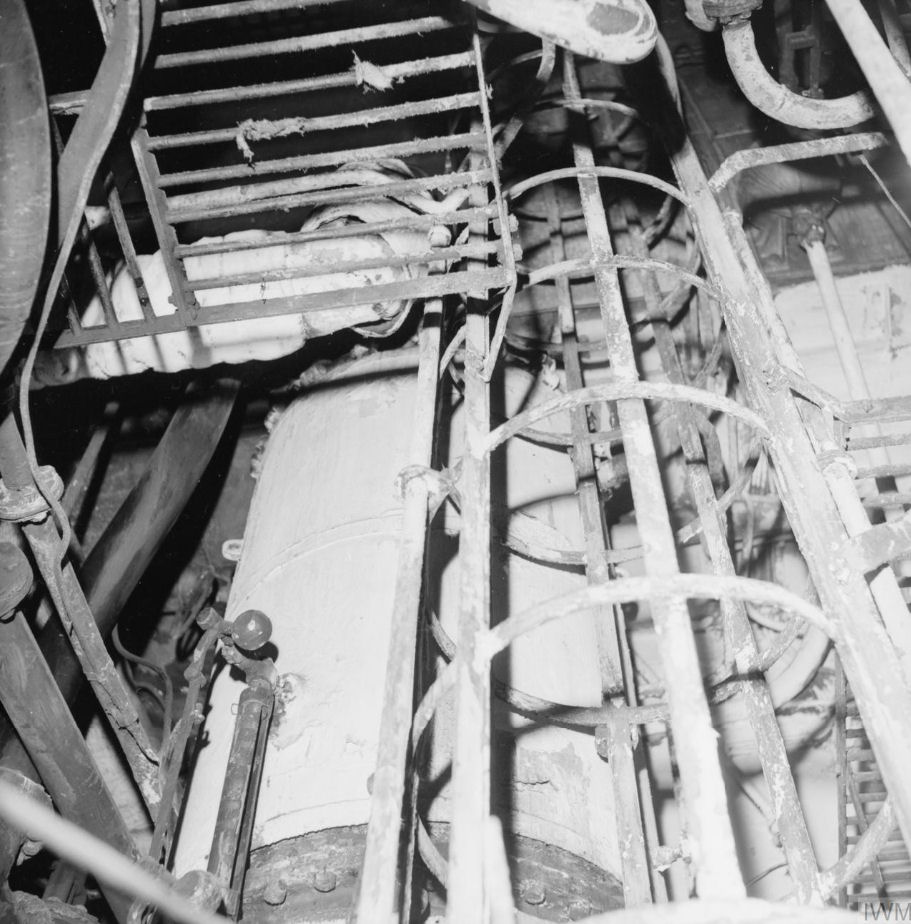 View of the ship’s Zentralle (next to Chart locker room)View forward from halfway up the bridge – fire control instruments in the foregroundGunnery control instrument in the conning towerView of bolier roomView of bolier room