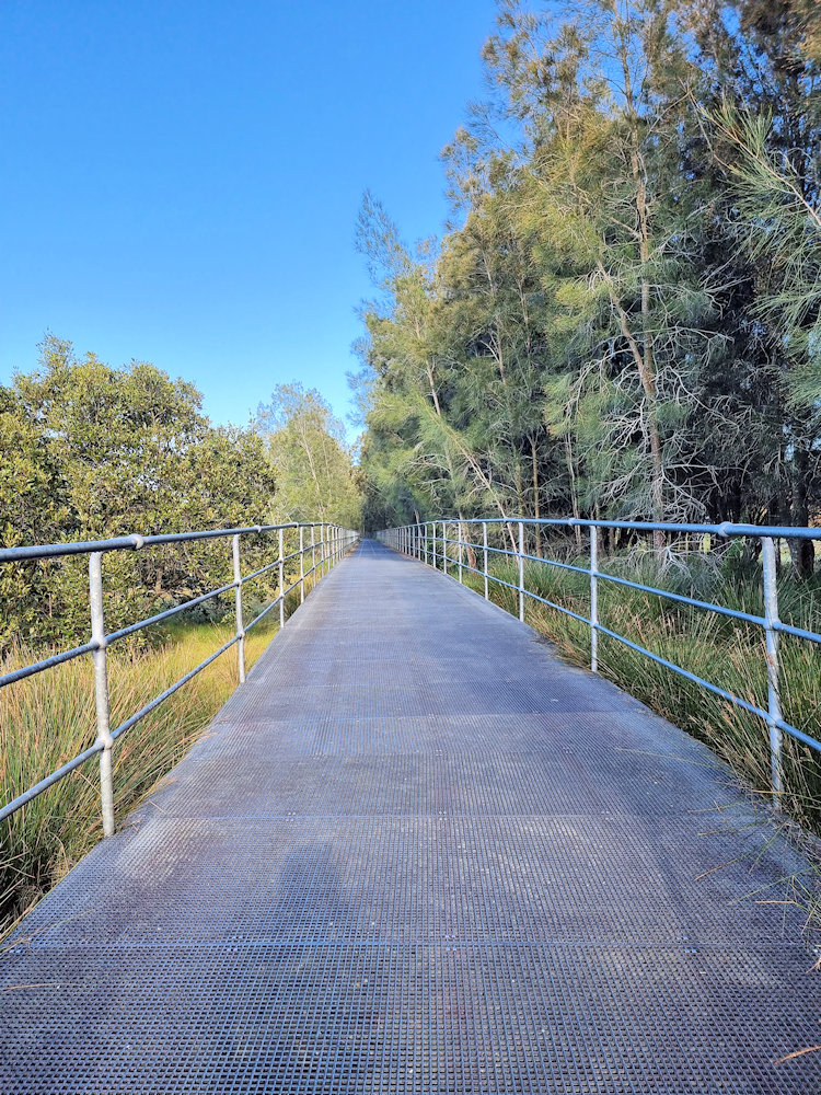 Despite recent rain, the track was in excellent condition. The majority is concrete, with a small section of raised boardwalk over a mangrove swamp. The grass and low-lying sections were very wet, with some sections looking very boggy. However, we stayed on the path with no problems. This is a popular walk with locals and was quite busy, even early in the morning. People with bikes (it’s a shared walking and biking track), prams and children were using it. There is a dividing line down the centre of the path, so remember to stay to the left. This allows bikes to safely pass you.
