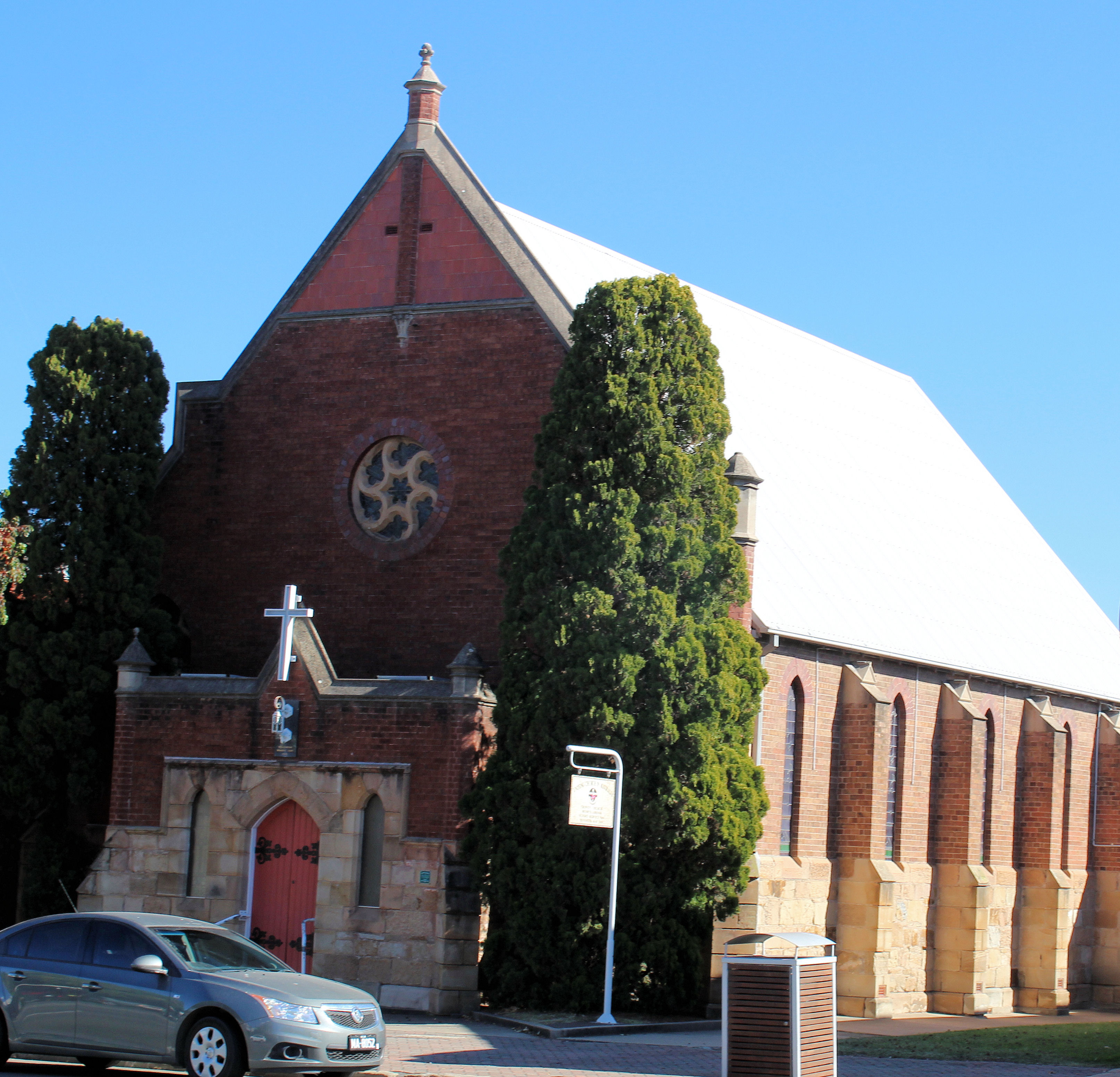 Our walk around Muswellbrook town centre started at St James Catholic Church. There is a car park nearby or in the street. This is a beautiful old church with a huge spire.