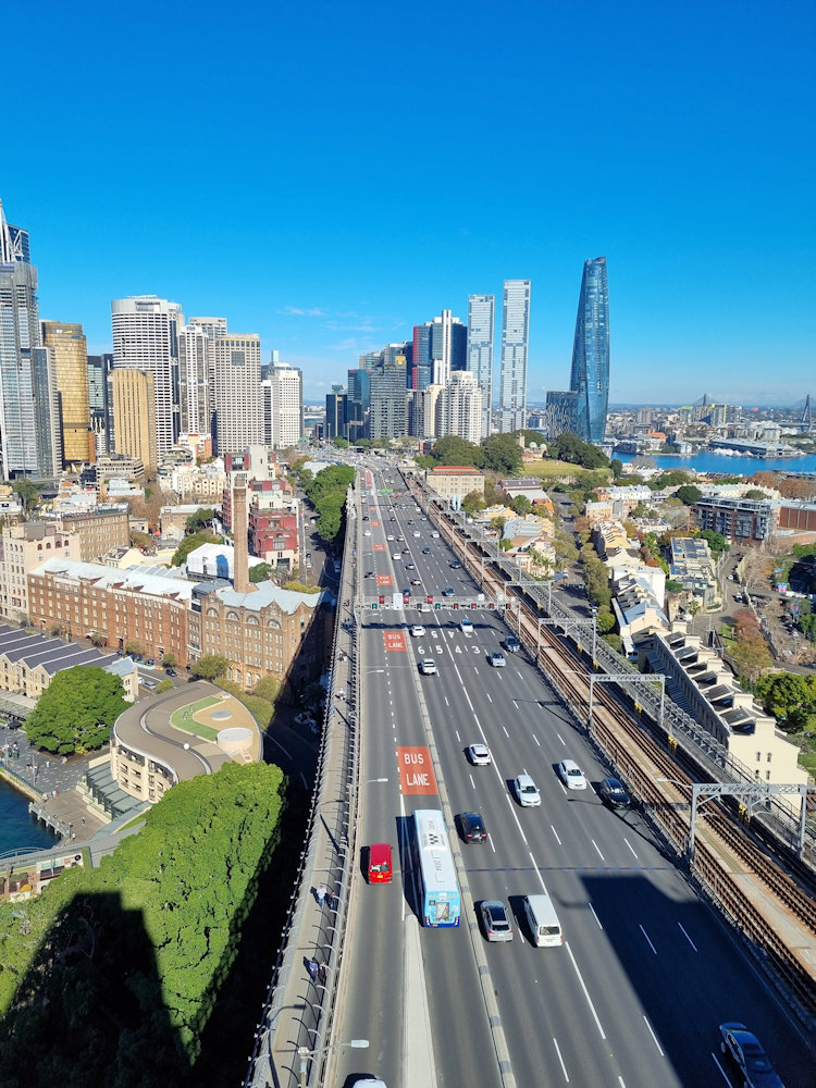 Traffic on the Sydney Harbour Bridge going into the city Sydney Harbour Bridge Pylon Museum and Lookout